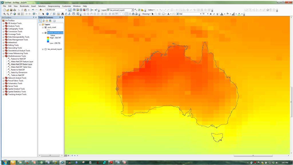 ArcGIS software is one of the more popular software packages used in the GIS community. Climate model data are most often available as NetCDF files, however these files are not a commonly used GIS format. Here we provide instructions on importation of NetCDF files into ArcGIS software so the files can be manipulated and explored by GIS users.