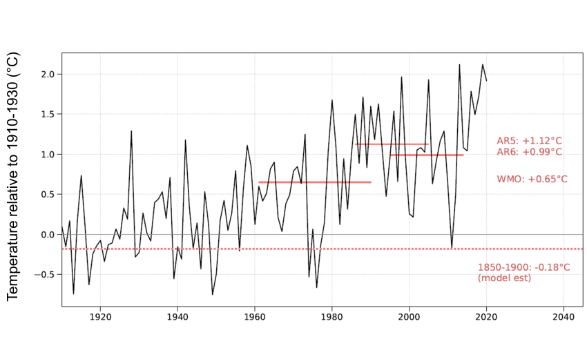 Estimated change 1850-1900 to 2011-2020: +1.1 °C